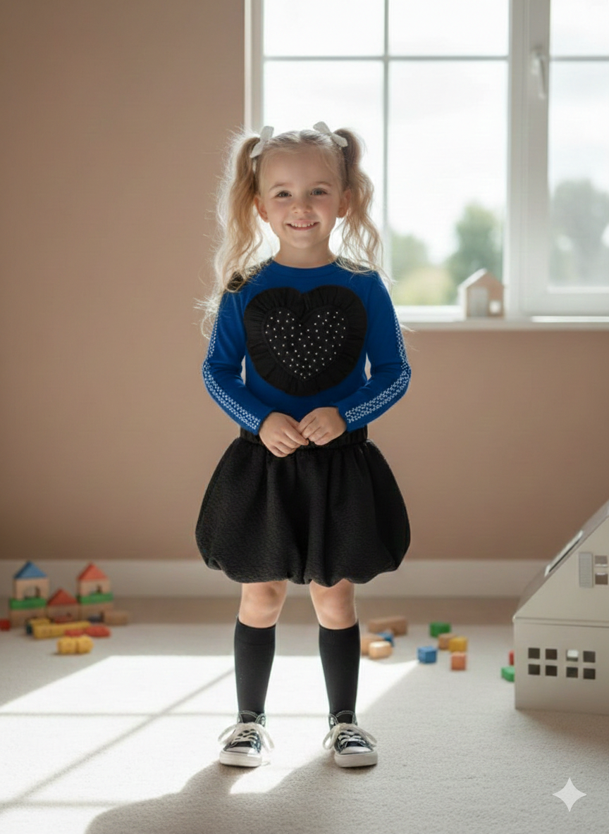 Kız çocukları için gerke günlük gezmeler için gerekse bayramlık olarak değerlendirilebilecek harika bir takım.; Üst badi kaşkorse olduğundan beden sorunu yaşamadan kolayca giydirebileceğiniz bir ürün.; Alt eteğin bürümcük kumaşlı balon formu ise farklılık ve modernizm katıyor.; Sizlere de minik prenseslerinizin favori renklerimi tercih etmeniz kalıyor.