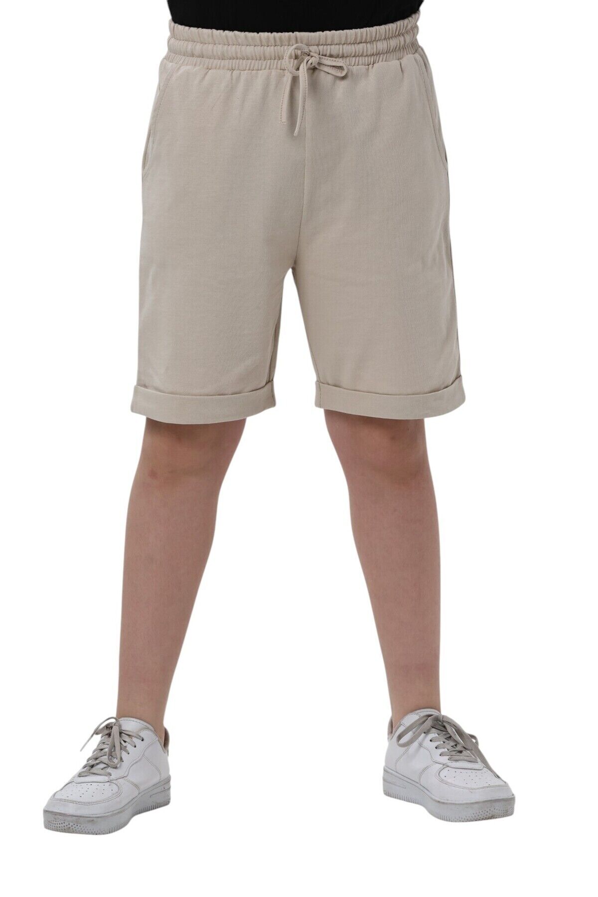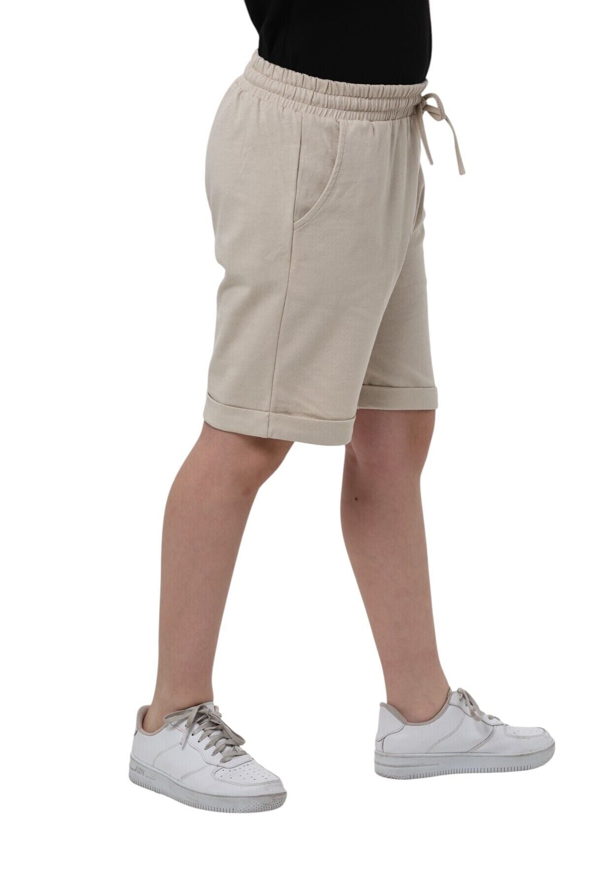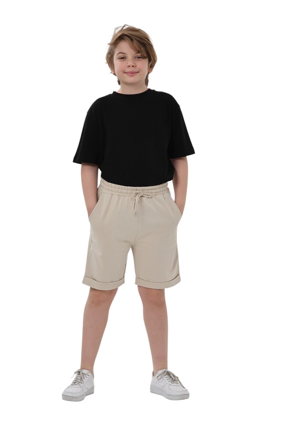 Erkek çocuk basic pamuklu penye double paça cepli şort Bej - 8-9 Yaş