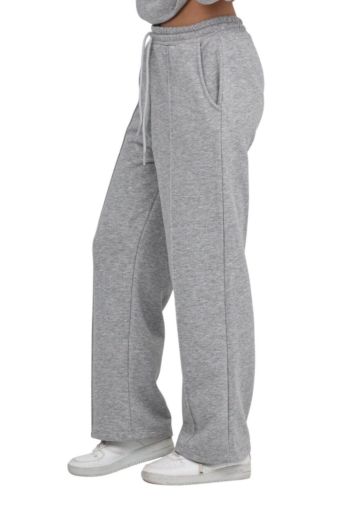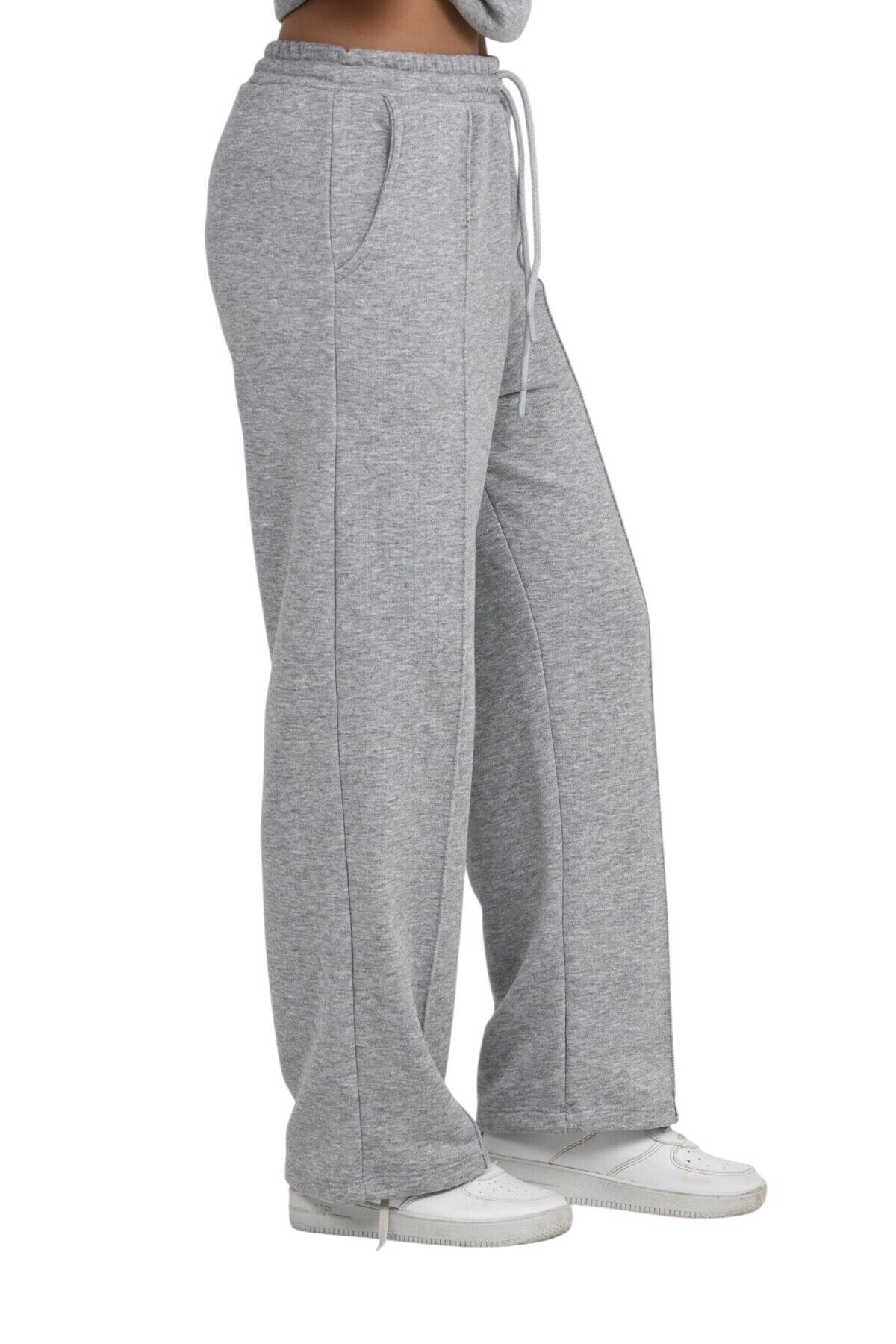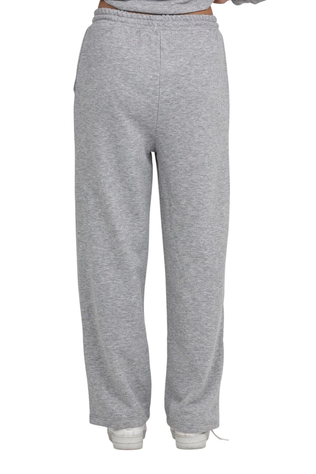 Kız Çocuk 3 İplik Penye Pamuk Beli Lastikli Bağcıklı Eşofman Altı Okul Pantolon Gri-Melanj - 8-9 Yaş