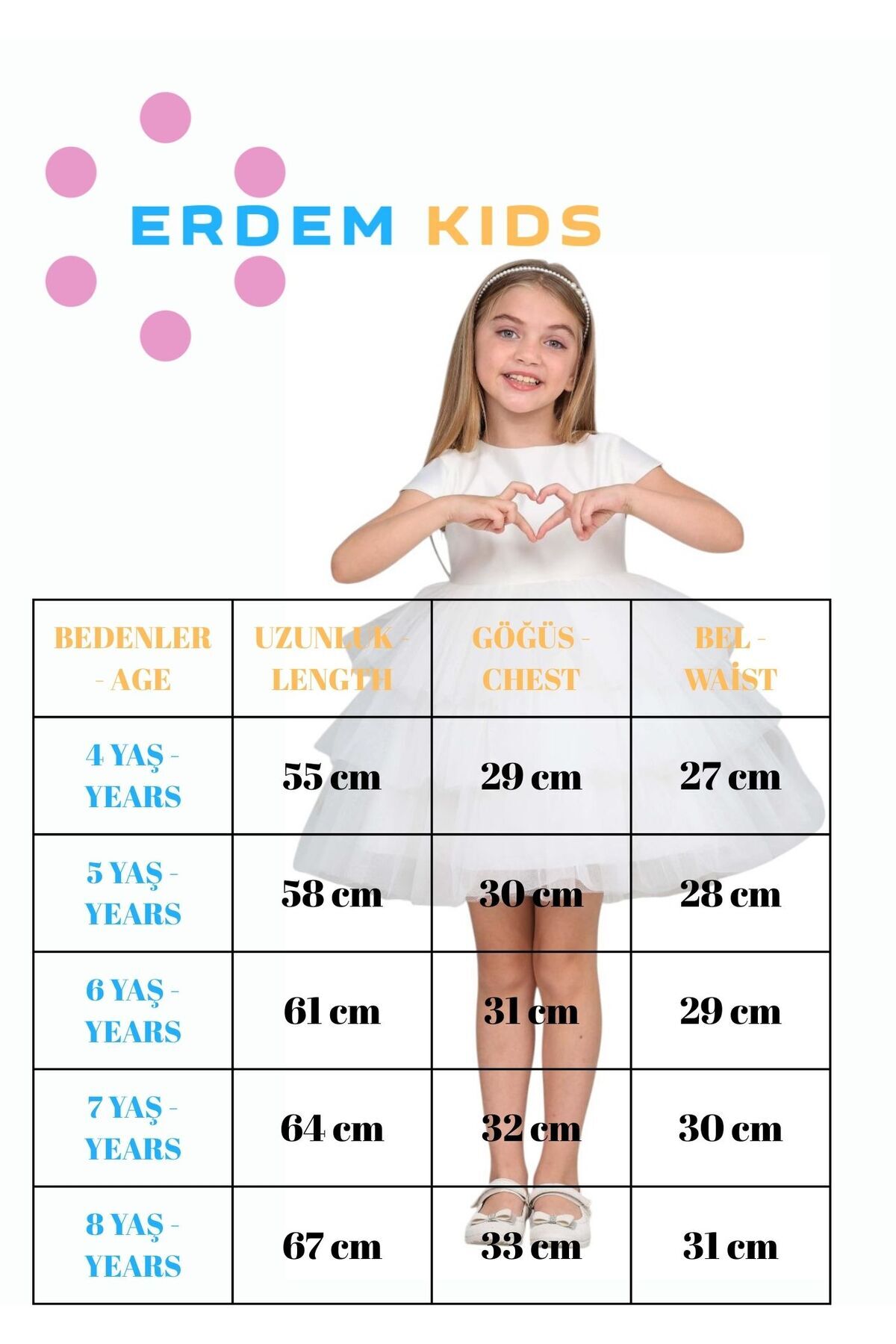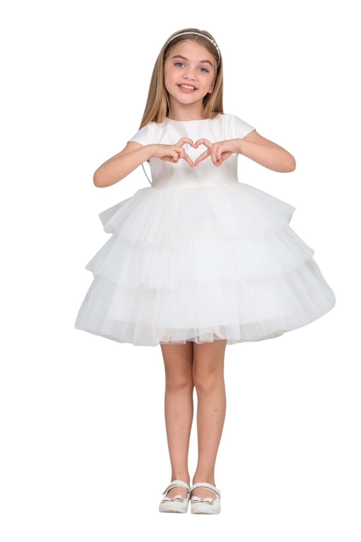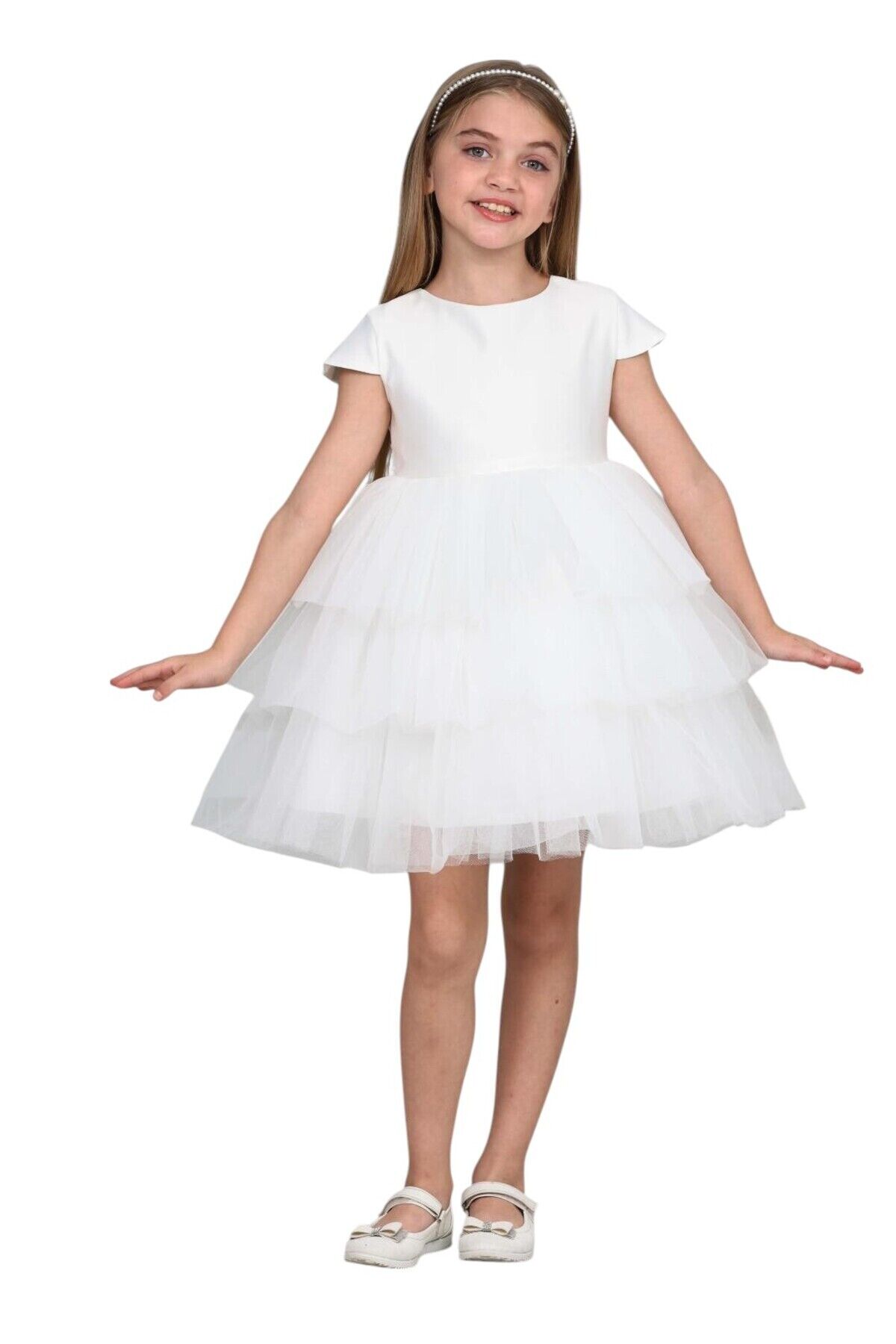 Kız çocuk fırfırlı tüllü saten doğum günü özel gün abiye elbise 4-8 yaş Beyaz - 4 Yaş