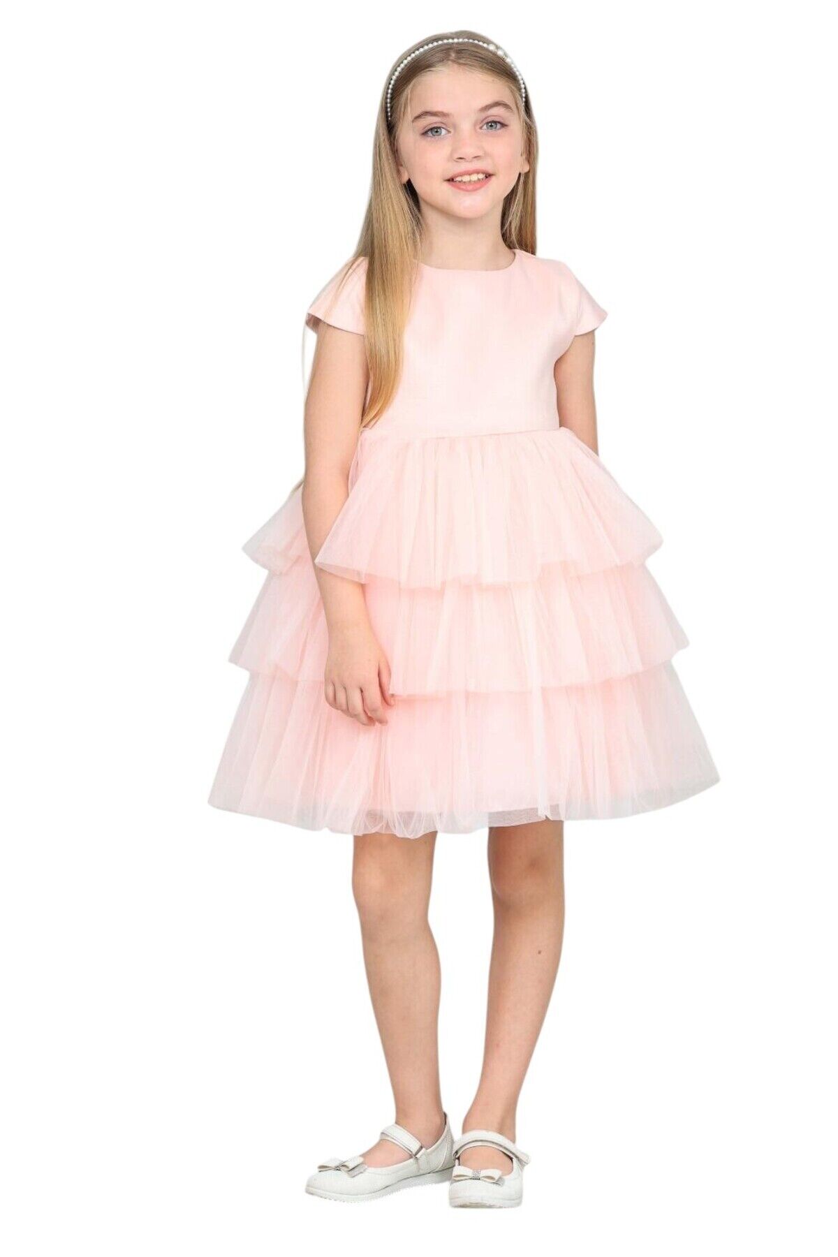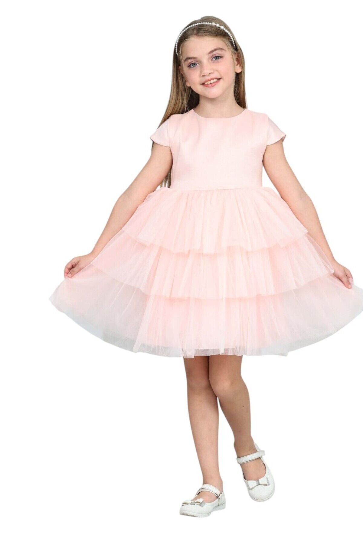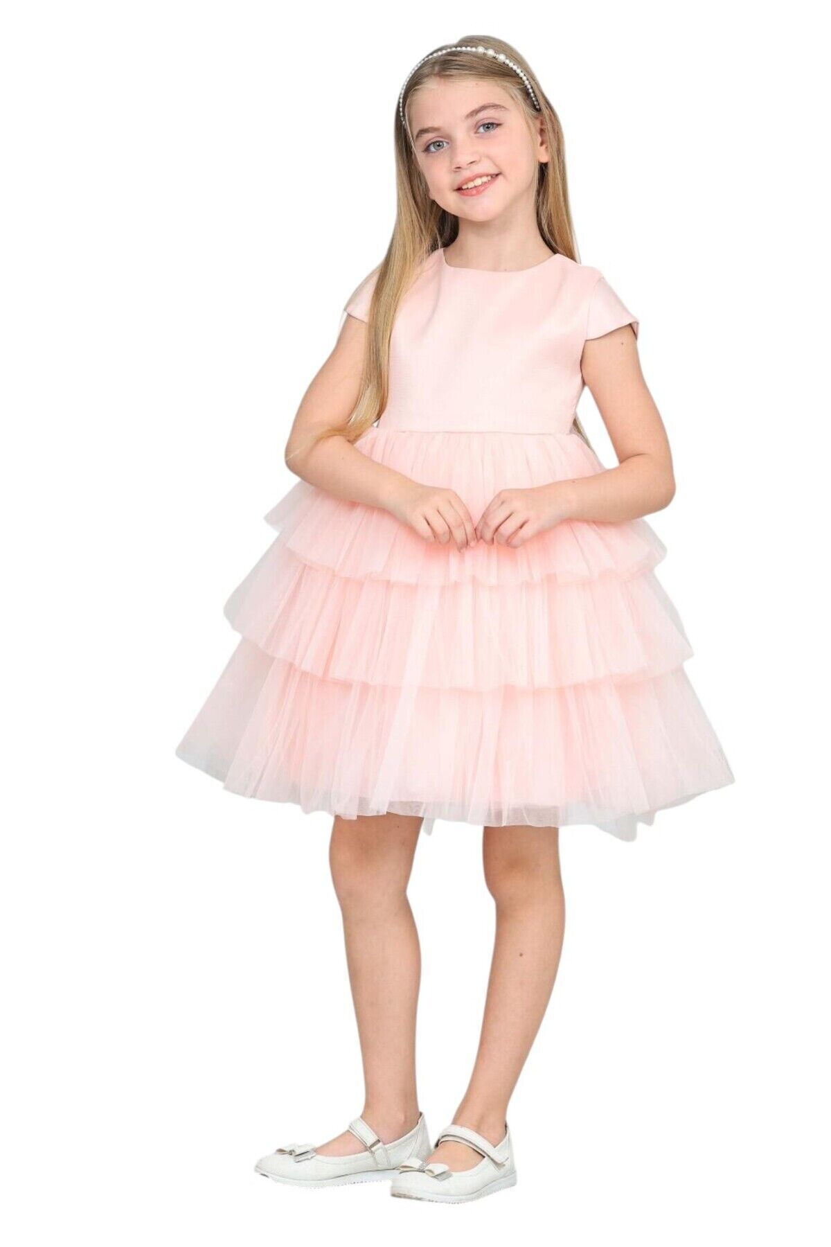 Kız çocuk fırfırlı tüllü saten özel gün abiye elbise 4-8 yaş Somon - 6 Yaş