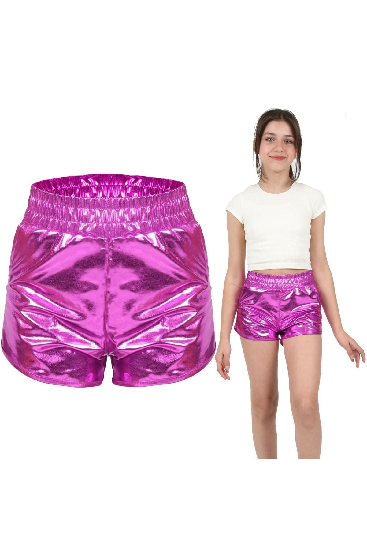 Kız çocuk Metalik Parlak, Işıltılı, Koşu, Yürüyüş, Dans, Spor, Atletik, Amigo Şortu Pembe - 6-7 Yaş