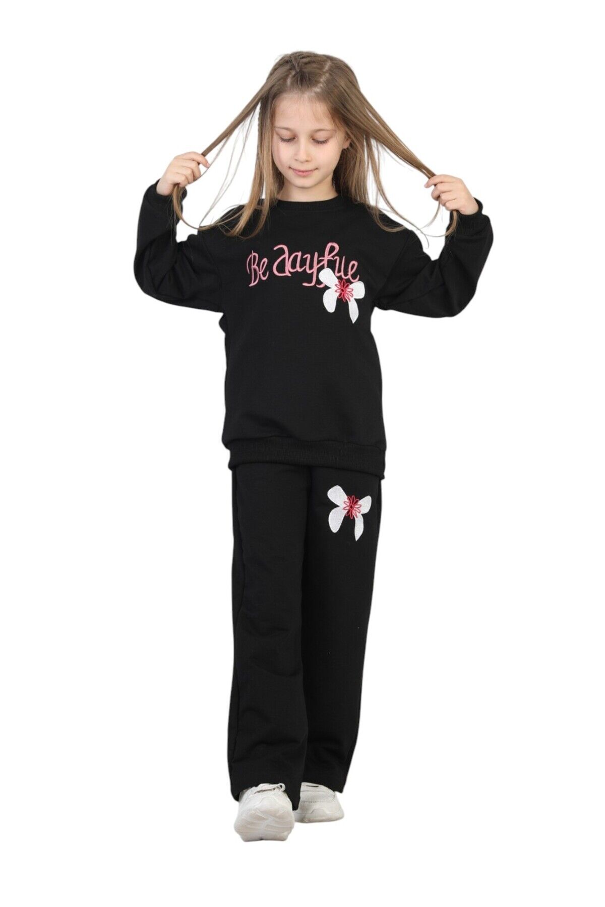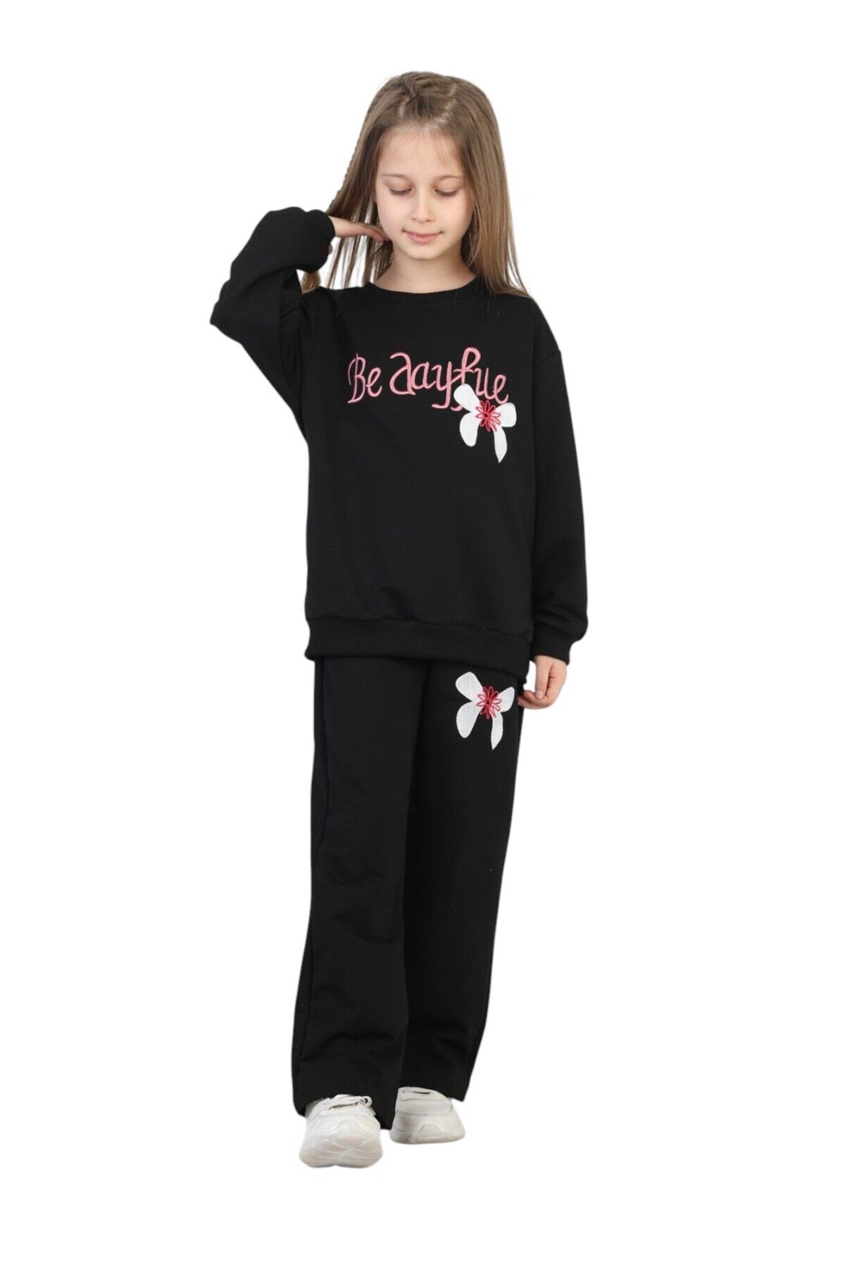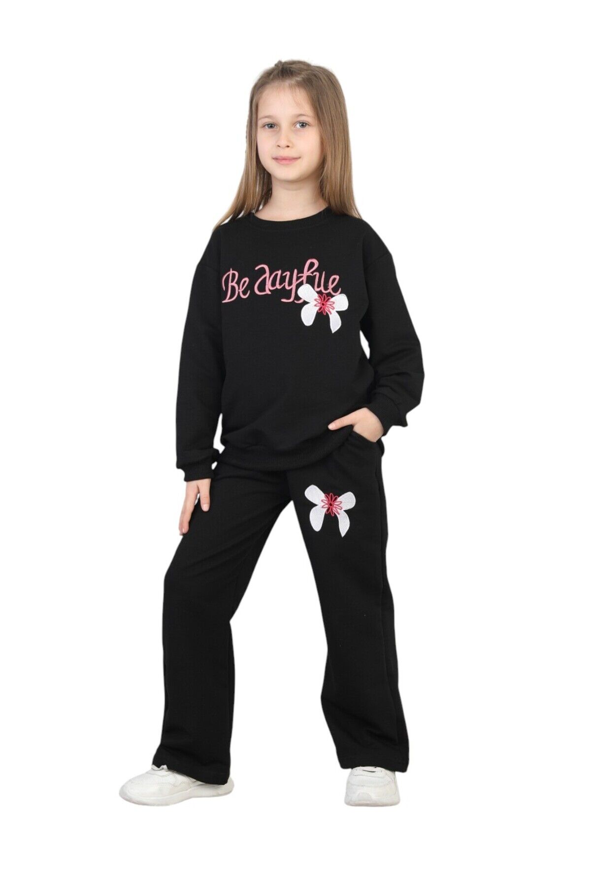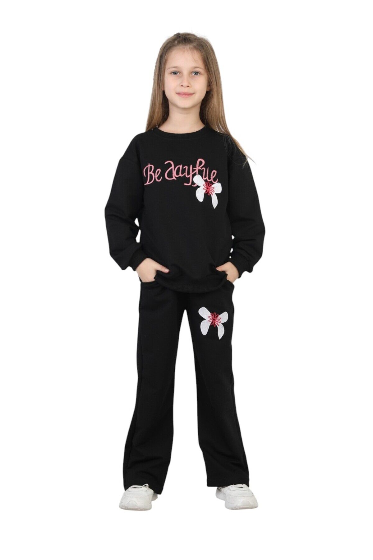 - Kız çocukları için tasarlanmış, rahat ve şık bir günlük kullanım için ideal iki iplik alt üst ikili takım.; - %100 pamuk materyalden üretilmiş olup, cildi tahriş etmeden gün boyu konfor sağlar.; - Nakışlı ve işlemeli detaylarla süslenmiş, göz alıcı pembe renk seçeneğiyle dikkat çeker.; - Standart kol ve geniş paça tasarımı ile hareket özgürlüğü sunar; bel lastiği sayesinde kolay giydirme imkanı sağlar.; - Relaxed kalıp ve basic siluet, gün boyu rahat bir kullanım vaat ederken, çift cepli yapısıyla pratiklik sunar.; - Bağlama/bağcık kapama şekli ve uzun kol boyu, mevsim geçişlerinde ideal bir seçimdir.; - Örme kumaş tipi sayesinde esnek ve dayanıklı yapısıyla uzun süreli kullanım imkanı sunar.; - 3-4 yaş beden seçeneğiyle çocukların rahatça hareket edebileceği konforlu bir kalıba sahiptir.; - Casual/günlük ortamlara uygun tasarımıyla her türlü aktivite için idealdir; cool & comfort persona ile tarz sahibi kız çocukları için mükemmel bir tercihtir.- %100 pamuk materyalden üretilmiş, cildi tahriş etmeyen ve nefes alabilen kumaş yapısı ile kız çocuklarının gün boyu rahat etmesini sağlar.; - Nakışlı ve işlemeli deseniyle şık bir görünüm sunar, okulda ve günlük kullanımda tarz sahibi bir görünüm kazandırır.; - İki parçadan oluşan alt-üst takım, sweatshirt ve eşofman altından oluşur; pratik kullanım ve kombin kolaylığı sağlar.; - Bisiklet yaka tasarımı ile modern ve rahat bir stil sunarken, standart kol tipi günlük aktivitelerde hareket özgürlüğü sağlar.; - Geniş paça tasarımı ve beli lastikli yapısı sayesinde konforlu bir oturuş sunar; geniş paça, hareket kolaylığı sağlarken beli lastikli olması rahat bir kullanım imkanı verir.; - Mix nakış tekniği ile detaylandırılmış baskı ve nakışlar, ürünün estetik görünümünü zenginleştirir ve dayanıklılığı artırır.; - Relaxed kalıp sayesinde vücuda tam oturan ancak sıkmayan bir yapıya sahiptir; çocukların hareketlerini kısıtlamaz.; - Sürdürülebilir malzemeler kullanılarak üretilmiş olması, çevre dostu bir tercih yapmanızı sağlar.