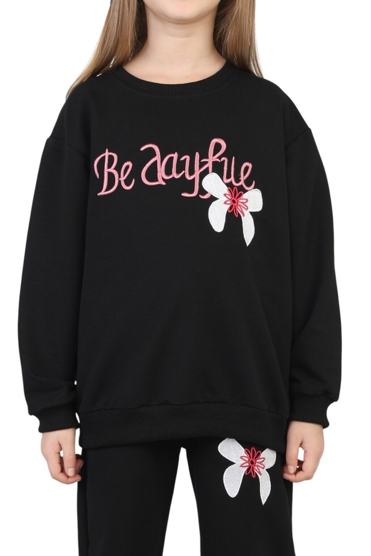 Kız Çocuk Okul Günlük Nakışlı İki İplik Alt Üst İkili Takım Klbktkm0002 Siyah - 4-5 Yaş