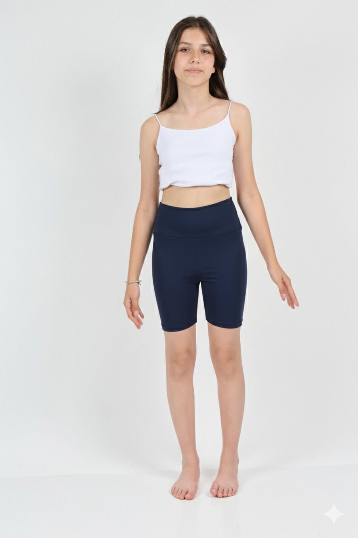 Kız Çocuk Okul Yüksek Bel, Biker, Casual, Koşu, Yürüyüş, Spor, Atletik, Egzersiz, Kısa Tayt Lacivert - 4-5 Yaş
