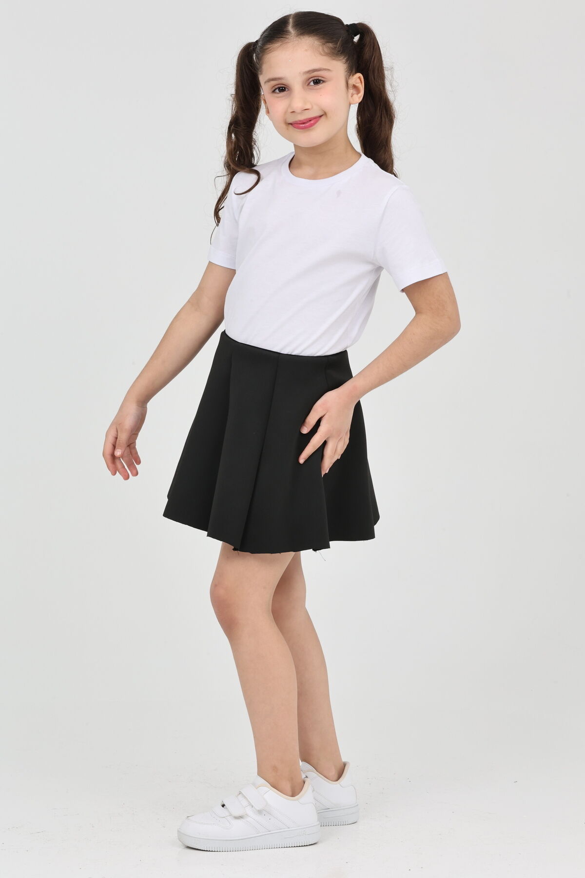 Kız çocuk siyah skuba kloş havuç dilimi günlük, bayramlık, gösteri, parti, özel gün okul etek Siyah - 4-5 Yaş