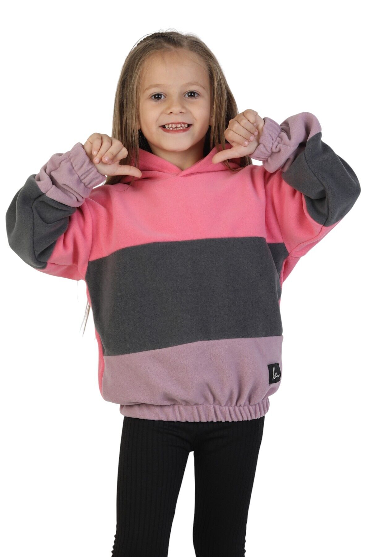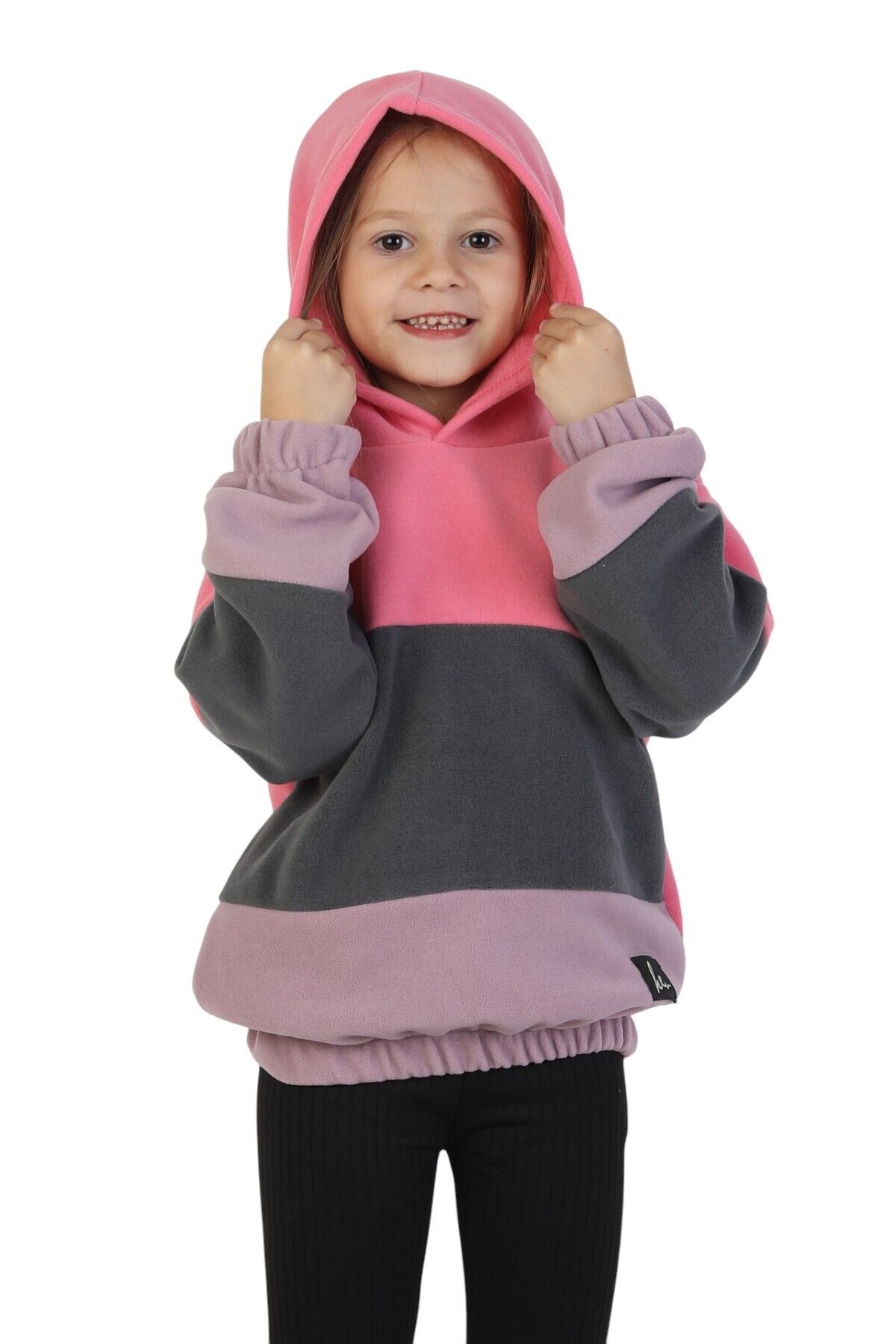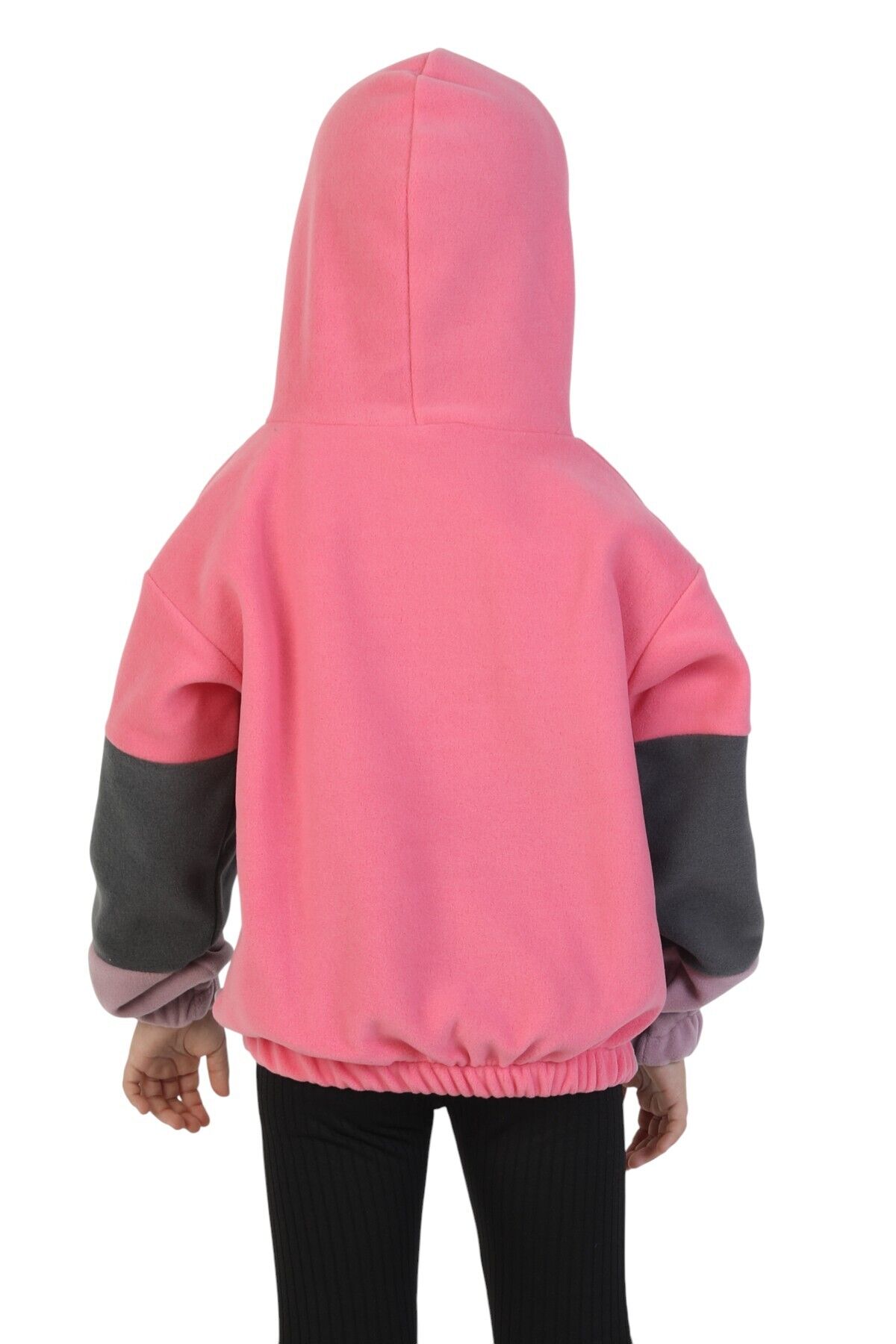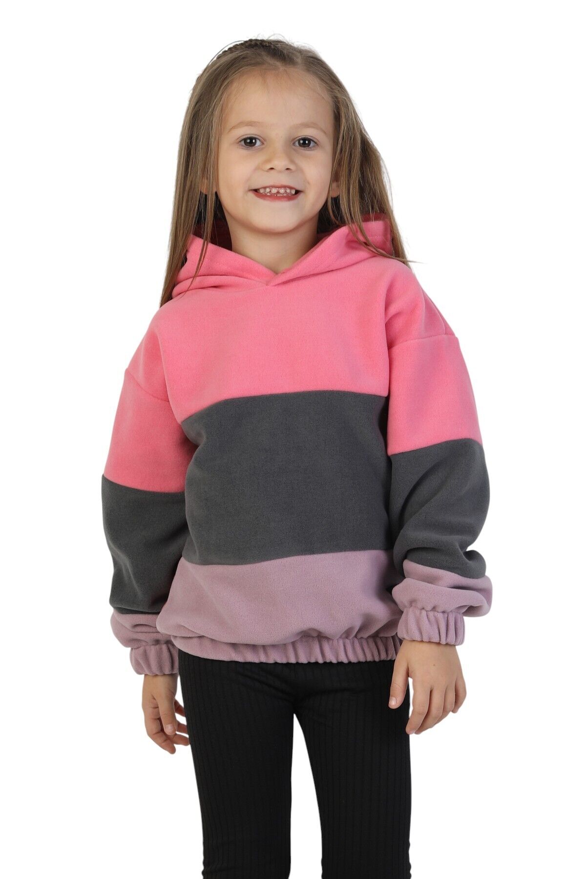Kız Çocuk Sweatshirt-Kazak Kapüşonlu Beli Lastikli Çok Renkli Kışlık Polar Sweat Pembe-Antrasit-Lila - 3-4 Yaş