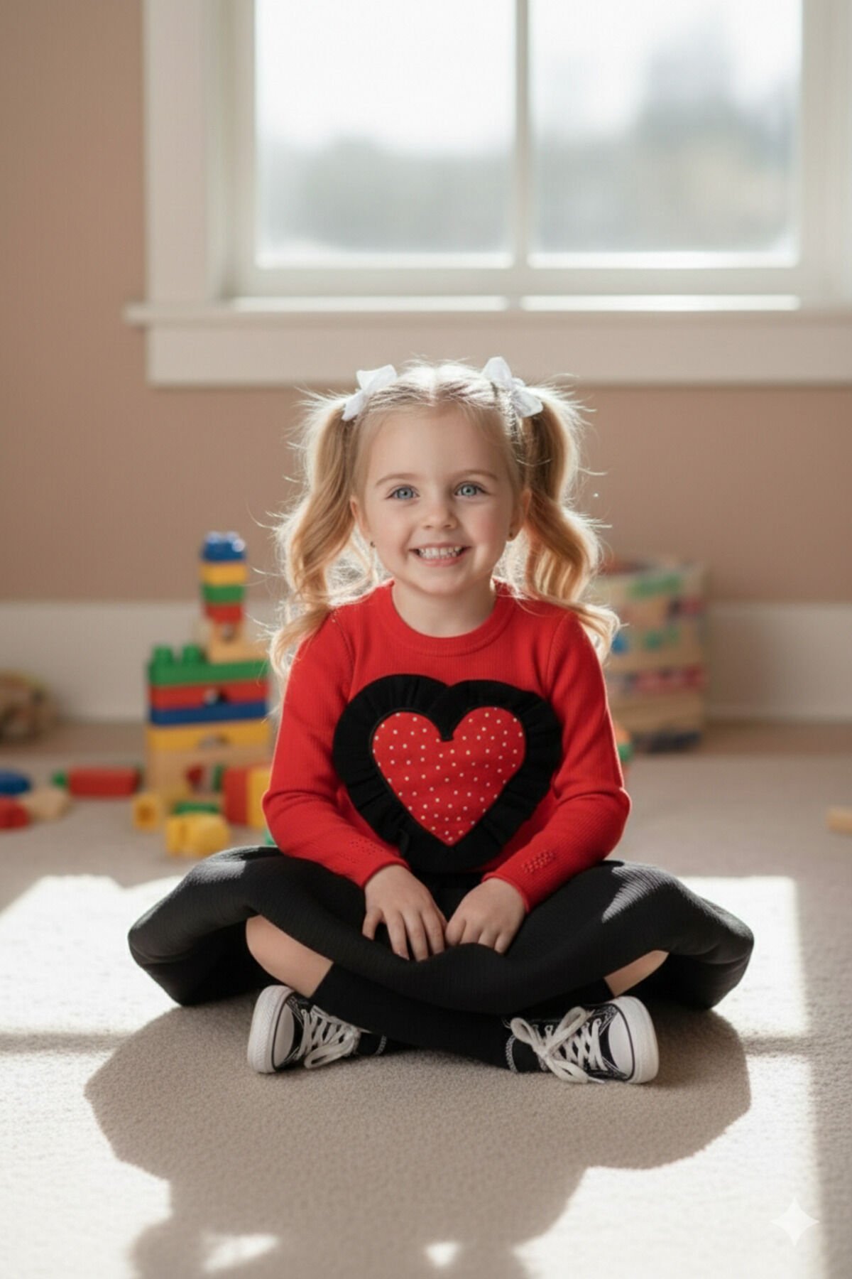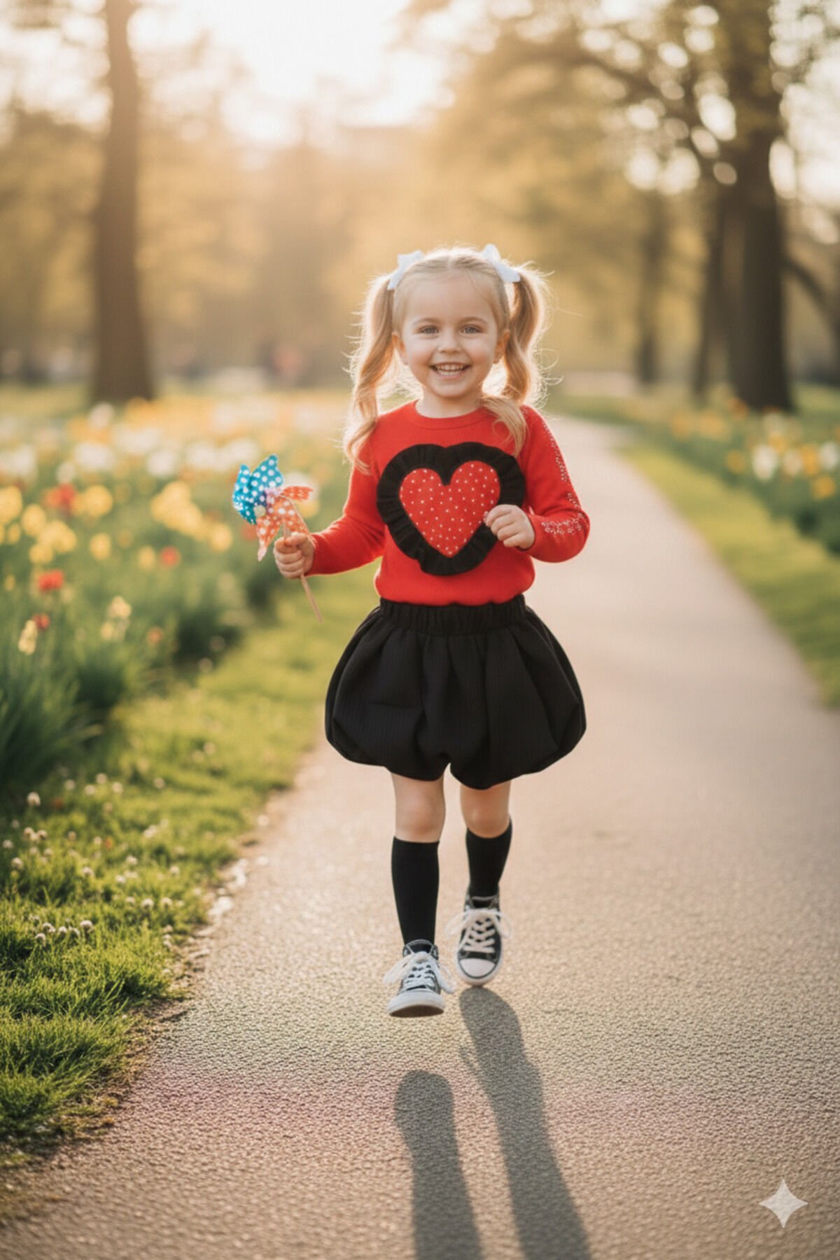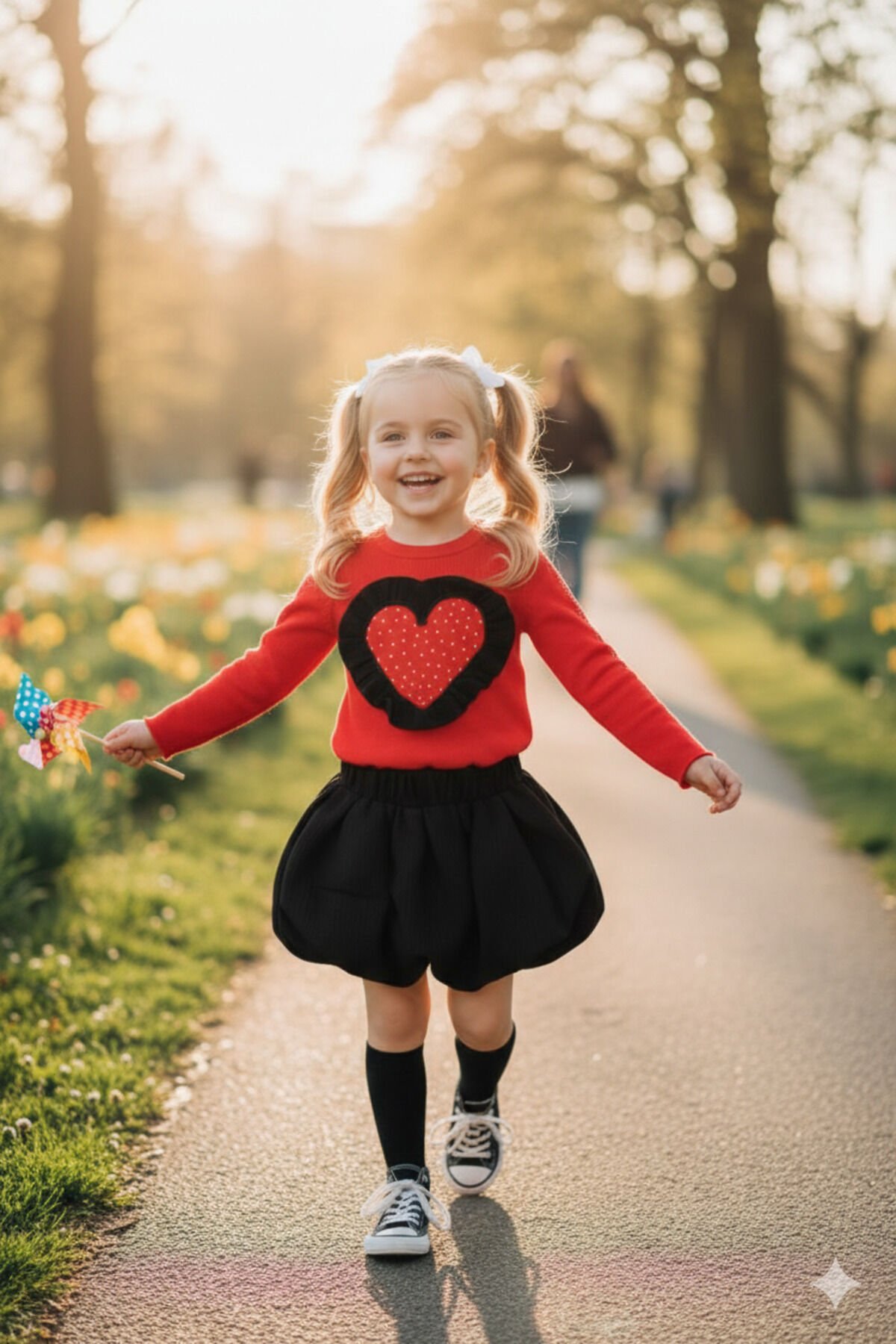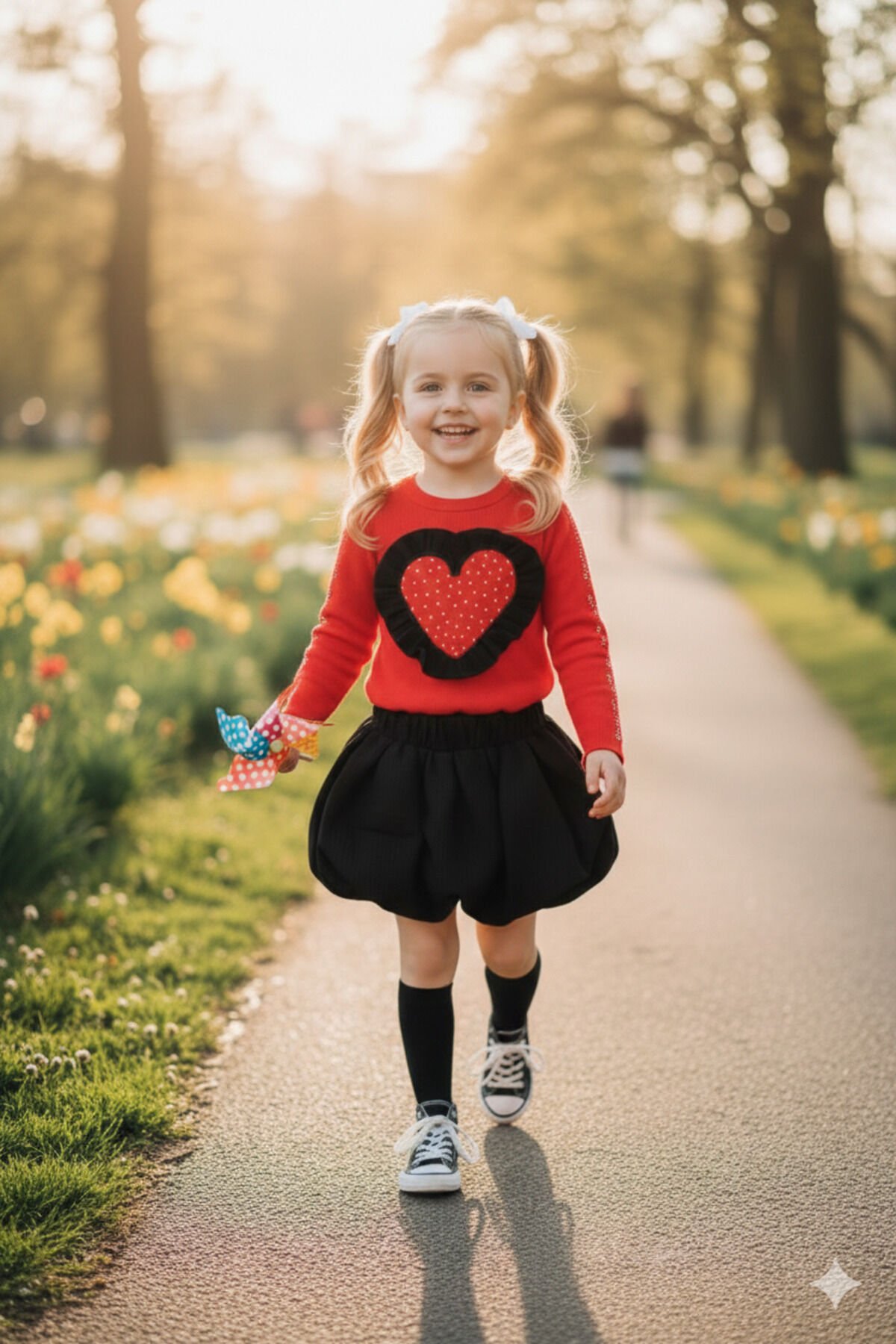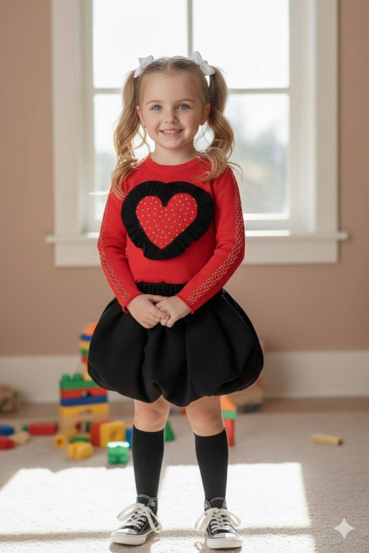 Kız Çocuk Taşlı Bluz Balon Etekli İkili Takım Kırmızı - 3-4 Yaş