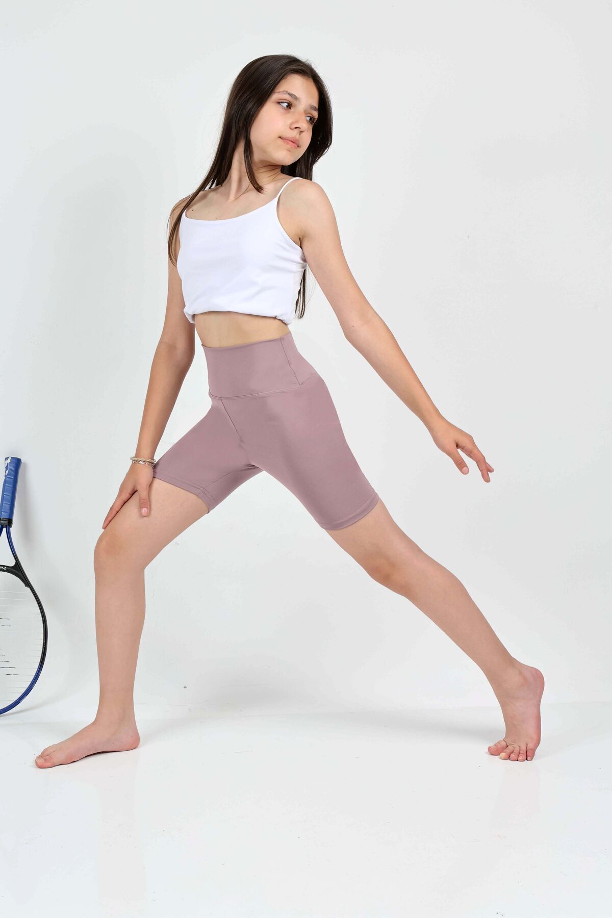 Kız çocuk Yüksek Bel, Biker, Casual, Koşu, Yürüyüş, Spor, Egzersiz, Fittness, Kısa Tayt Lila - 10-11 Yaş