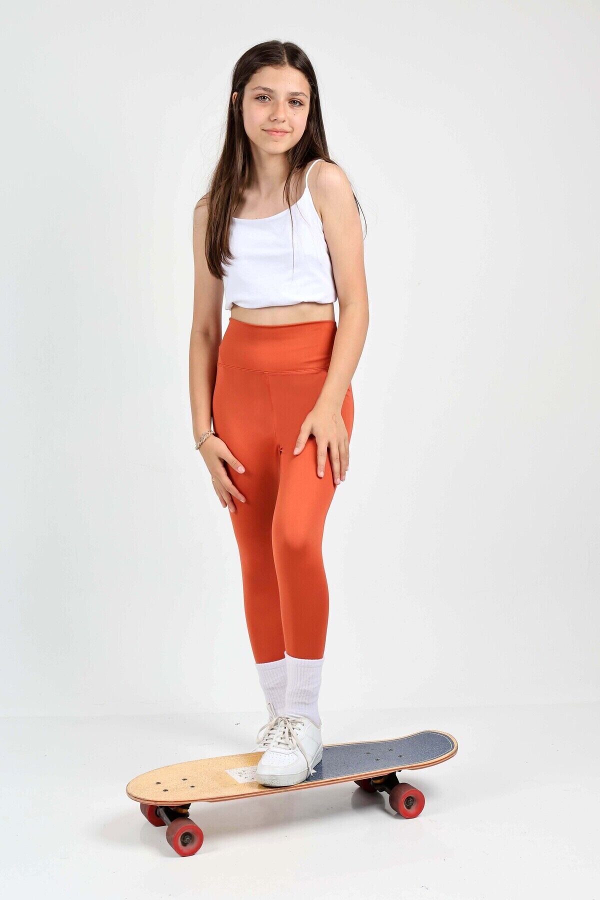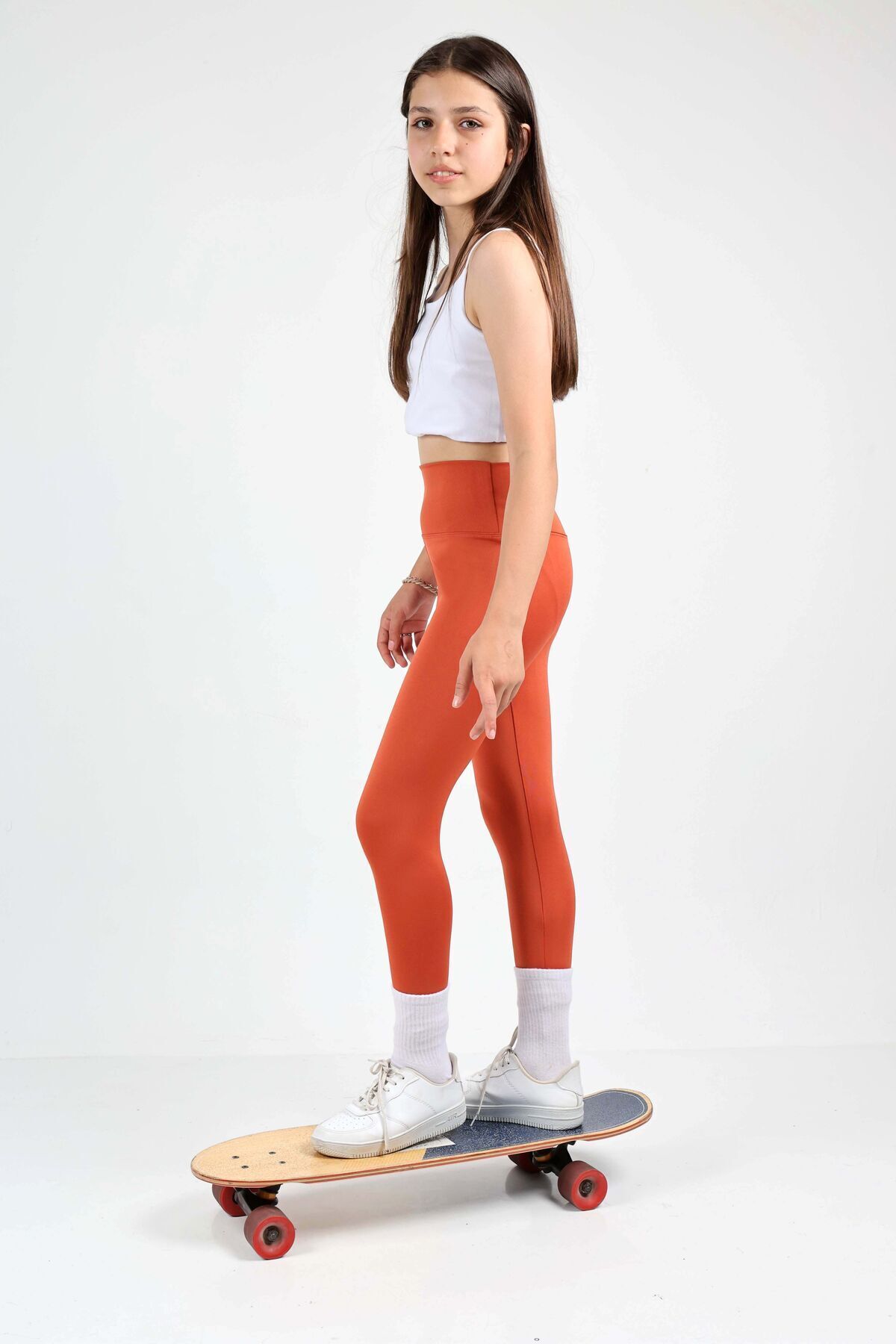 Kız çocuk Yüksek Bel, Koşu, Yürüyüş, Biker, Casual, Spor, Atletik, Egzersiz, FittnessTayt Kiremit - 6-7 Yaş