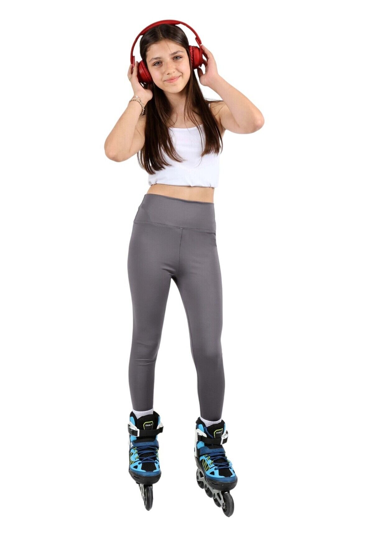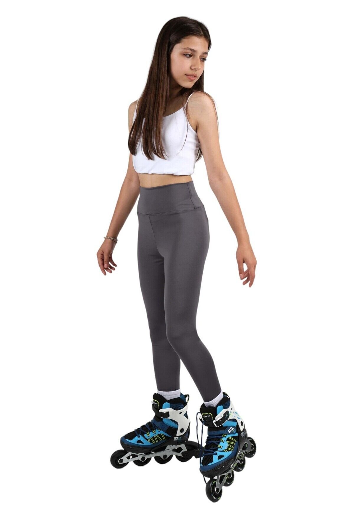 Kız çocuk Yüksek Bel, Koşu, Yürüyüş, Casual, Spor, Atletik, Egzersiz, Fittness Tayt Antrasit - 4-5 Yaş