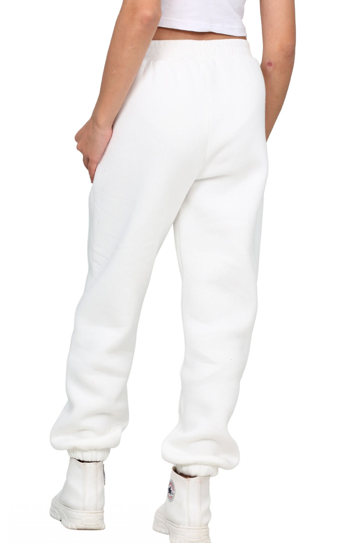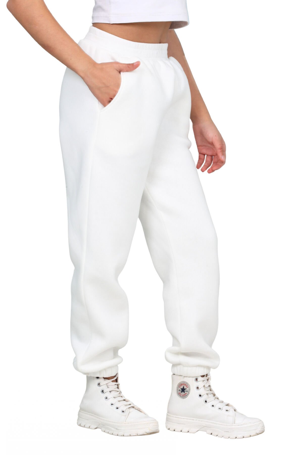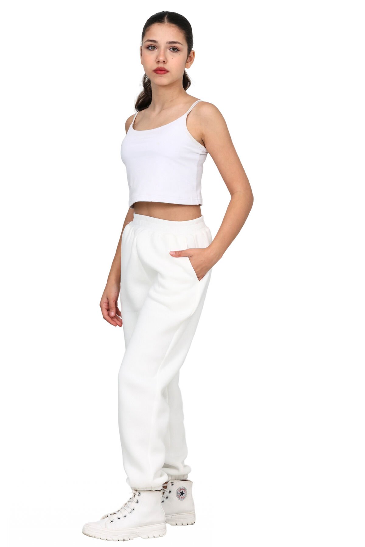 Kız-Erkek çocuk paçası lastikli 3 iplik şardonlu içi pamuklu okul eşofman altı pantolon Ekru - 11-12 Yaş